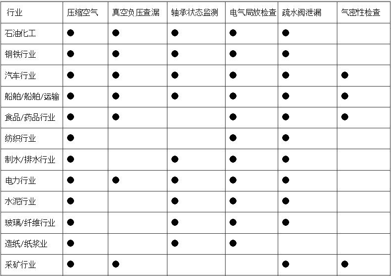 | 灵敏度: | 1bar压力下可检测30米外的0.01mm的泄漏孔 |