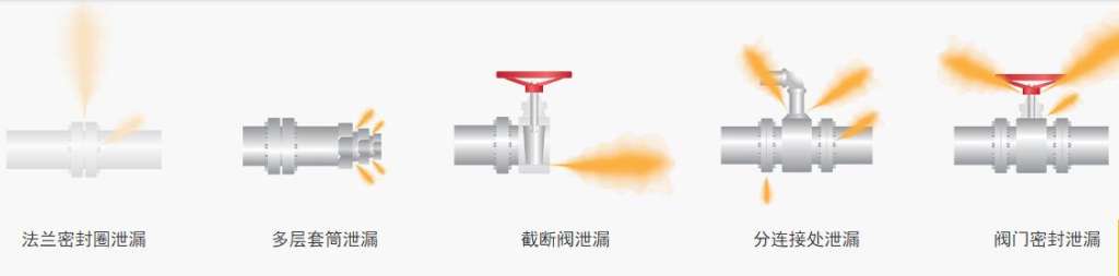 例如:气体泄漏问题(压缩空气,氮气,氦气,氧气,甲烷,二氧化碳,氯氟烃等),