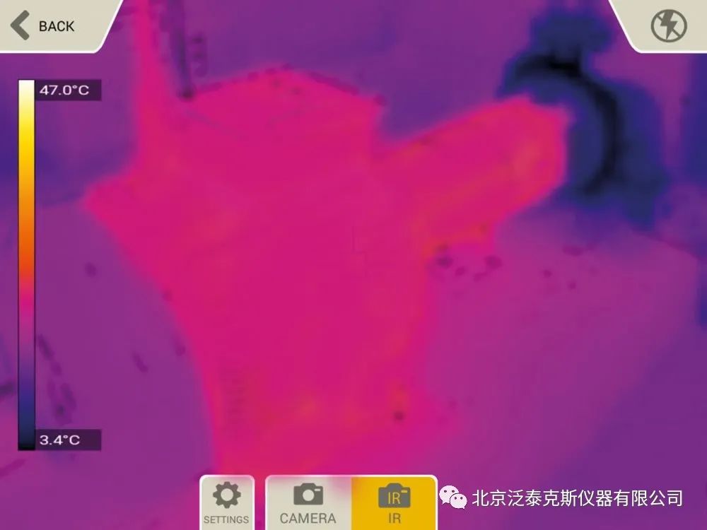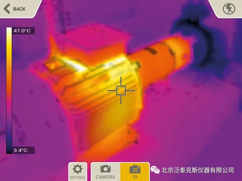 在进行测试的过程中,将泵-电机组引入不对中状态。在不对中状态期间,通过XT11主机单元的红外热成像功能拍摄了一组照片,来识别关键部位的温度情况。在严重不对中的状况下,联轴器、轴承和机器外壳都出现了明显的升温;当重新对中后,设备处于正常轴对中的情况下,元器件逐渐冷却,并没有明显的高温现象。