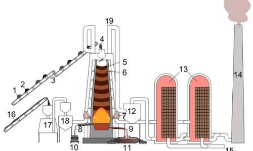 高炉是用钢板作炉壳,壳内砌耐火砖内衬。由于高炉炼铁技术经济指标良好,工艺简单,生产量大,劳动生产效率高,能耗低等优点,故这种方法生产的铁占世界铁总产量的绝大部分。高炉生产时从炉顶装入铁矿石、焦炭、造渣用熔剂(石灰石),从位于炉子下部沿炉周的风口吹入经预热的空气。 在高温下焦炭(有的高炉也喷吹煤粉、重油、天然气等辅助燃料)中的碳同鼓…