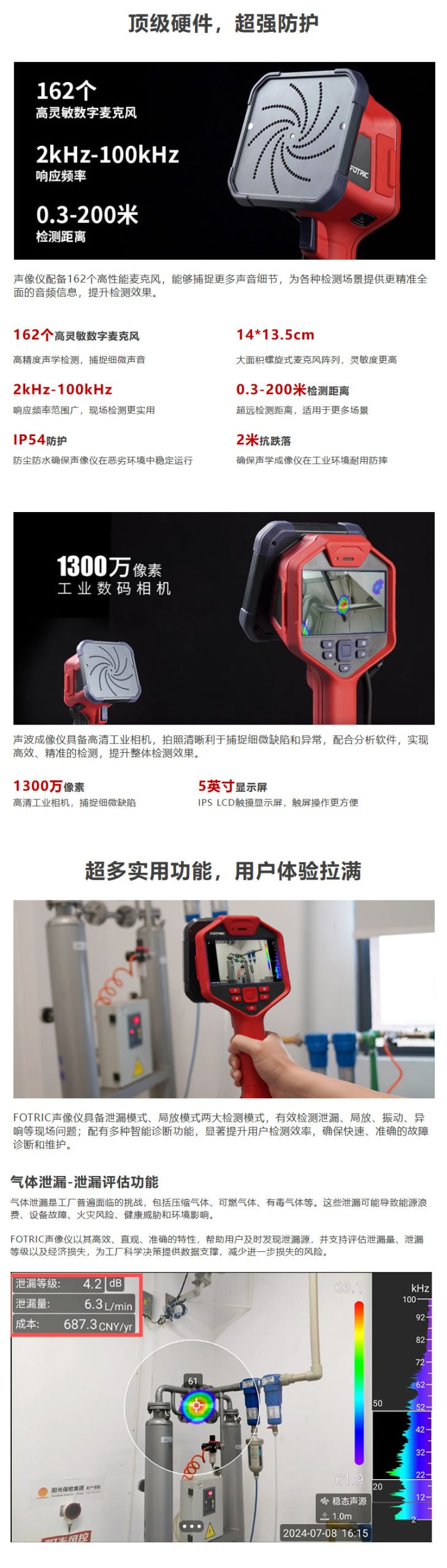 声像仪配备162个高性能麦克风,能够捕捉更多声音细节,为各种检测场景提供更精准全面的音频信息,提升检测效果。