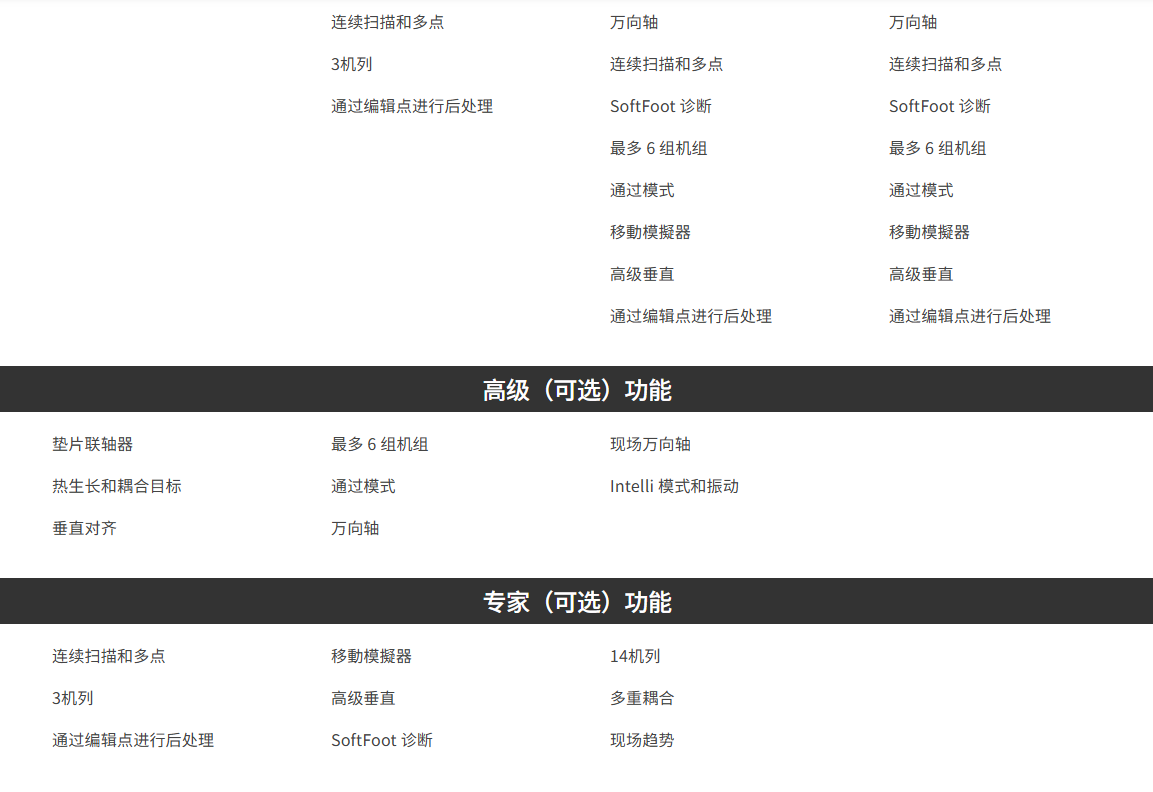 - 核心对齐任务:水平/垂直对准、软脚、扭曲/平整度、直线度、机器运动、非耦合对准